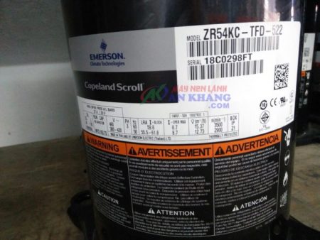 Máy nén lạnh Copeland ZR54KC-TFD-522 được áp dụng cho tất cả các thiết bị điện lạnh Hiệu xuất tuyệt vời máy ít rung động ,tiếng ồn thấp ,tiêu thụ nhiên liệu năng lượng ít độ bền cao