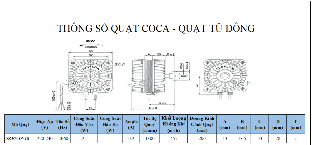 + Quạt Coca quạt tủ đông 25W: YZF5-13-18