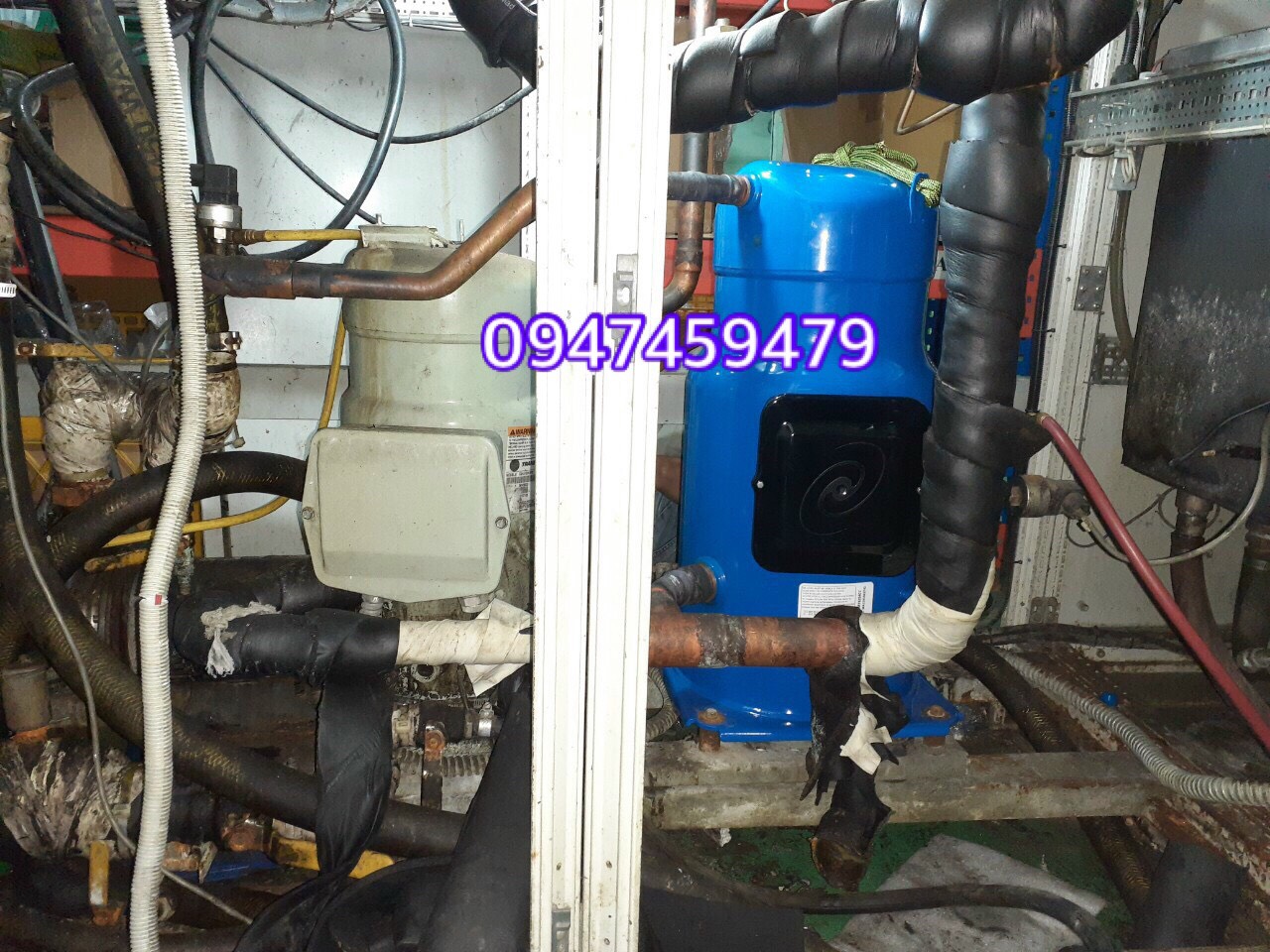 thay lốc (máy nén) chiller 25hp SY300 tại cần thơ